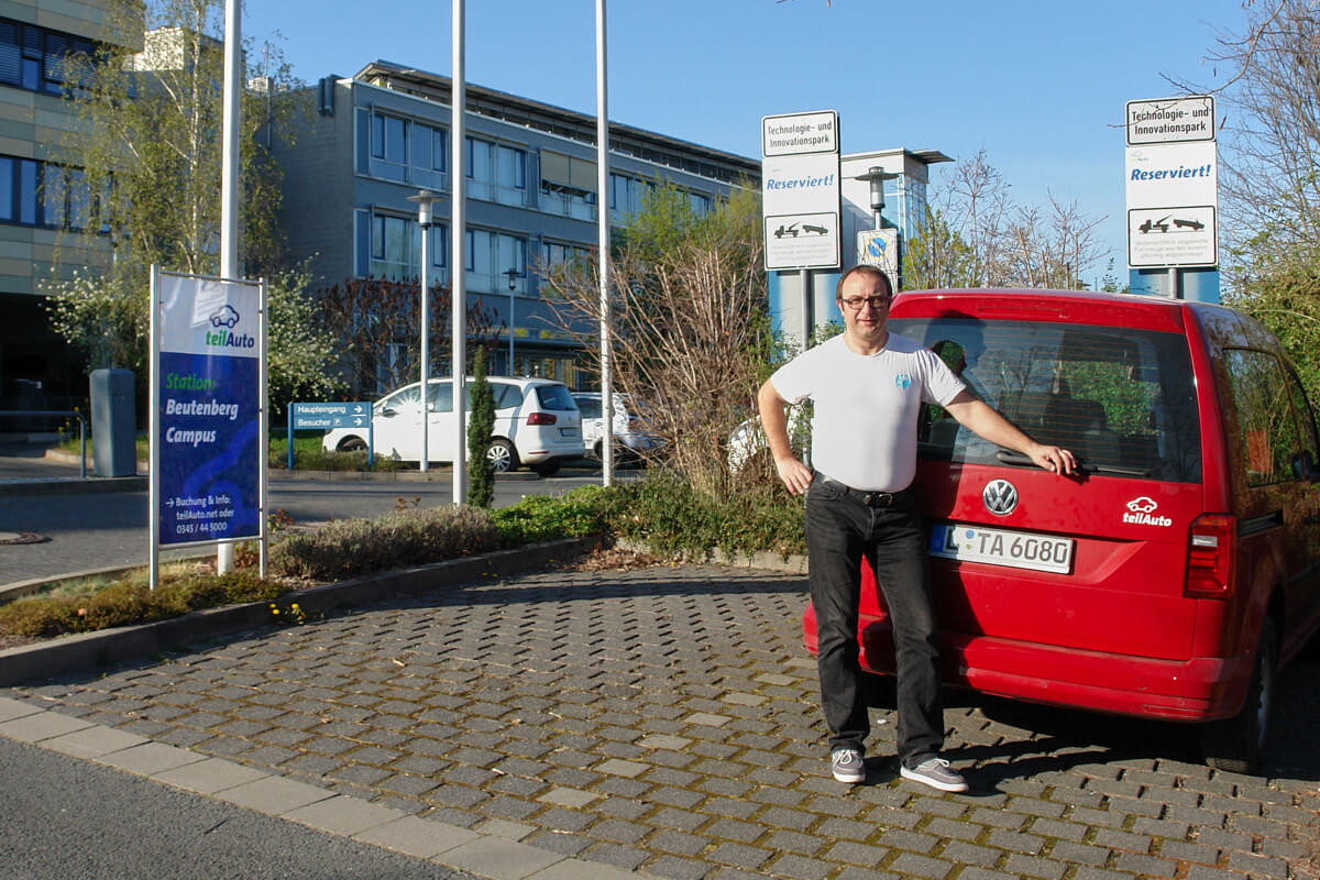 Einer der Helfenden ist der Filmproduzent Fagus Pauly aus Jena. Er hat die Patenschaft für die Station Campus Beutenberg in der Saalestadt übernommen. Mit seiner kleinen Produktionsfirma nutzt er Carsharing vor allem für den Transport seiner Ausrüstung zum Drehort. Aktuell sind jedoch alle Dreharbeiten abgesagt und der Schwerpunkt auf die Entwicklung von Drehbüchern verlagert. „Auch wenn wir jetzt nicht fahren, Carsharing hat sich für uns als Mobilitätskonzept bewährt. Wie möchten auch in Zukunft noch bei Bedarf auf Kombis, Transporter und Busse zugreifen können.“ Deshalb unterstützt er teilAuto in der Krise.