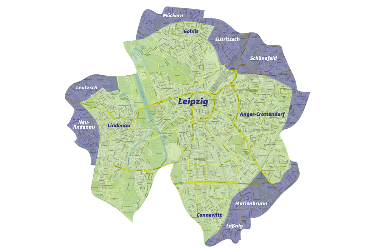 Durch die Erweiterung wurden Eutritzsch, Leutzsch, Lößnig, Marienbrunn, Möckern, Neulindenau und Schönefeld neu an das Freefloating-System angeschlossen. Bitte achtet darauf, dass nicht immer der komplette Stadtteil im Geschäftsgebiet liegt.